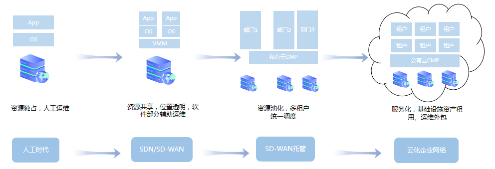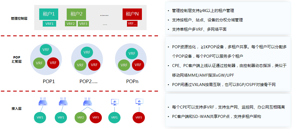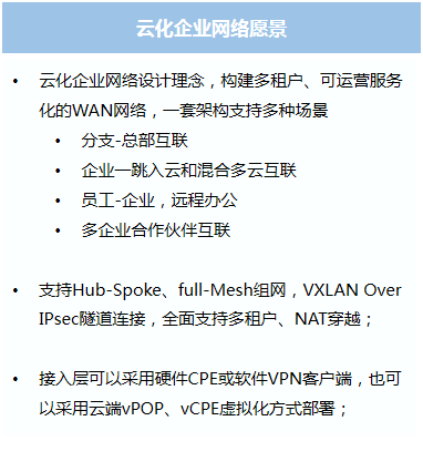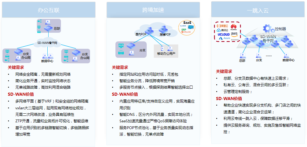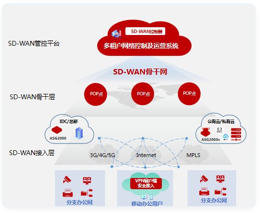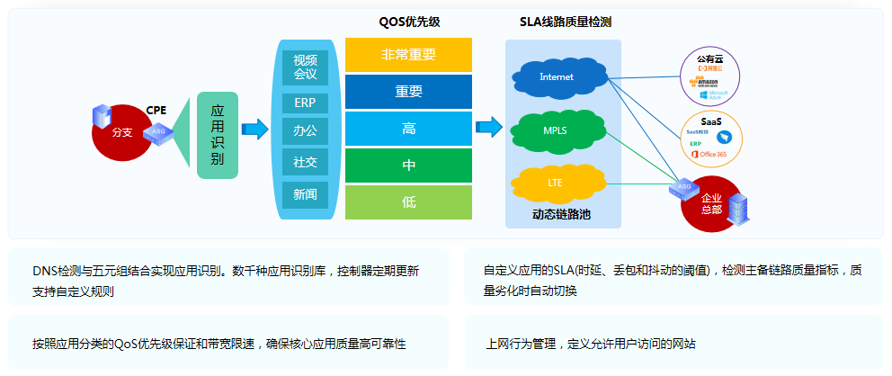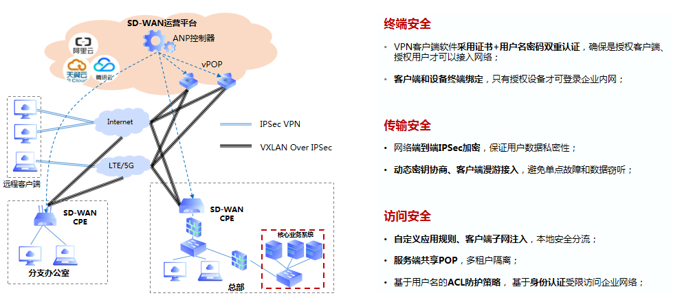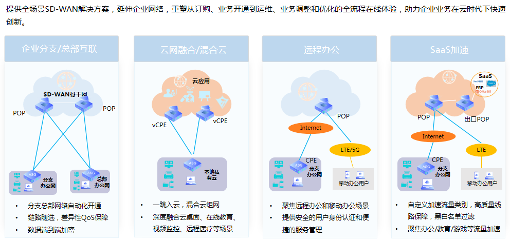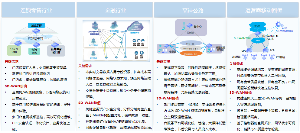天鸿汇通对传统的广域网赋能“软件定义”思路和技术,构建从最后一公里和中间一公里的端到端SD-WAN网络。为用户提供统一接入平台,简化服务开通、降低管理成本和按需弹性计费。实现快速部署、按需选择带宽、高可靠&低延迟,打造基础资源可见、采购成本可见、网络流量及质量可见的透明化、一站式端到端的SD-WAN网络,打破传统“网络服务提供商”信息瓶颈。